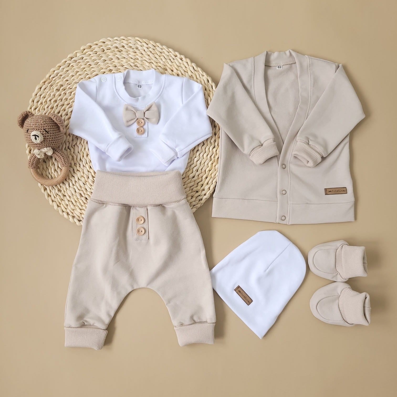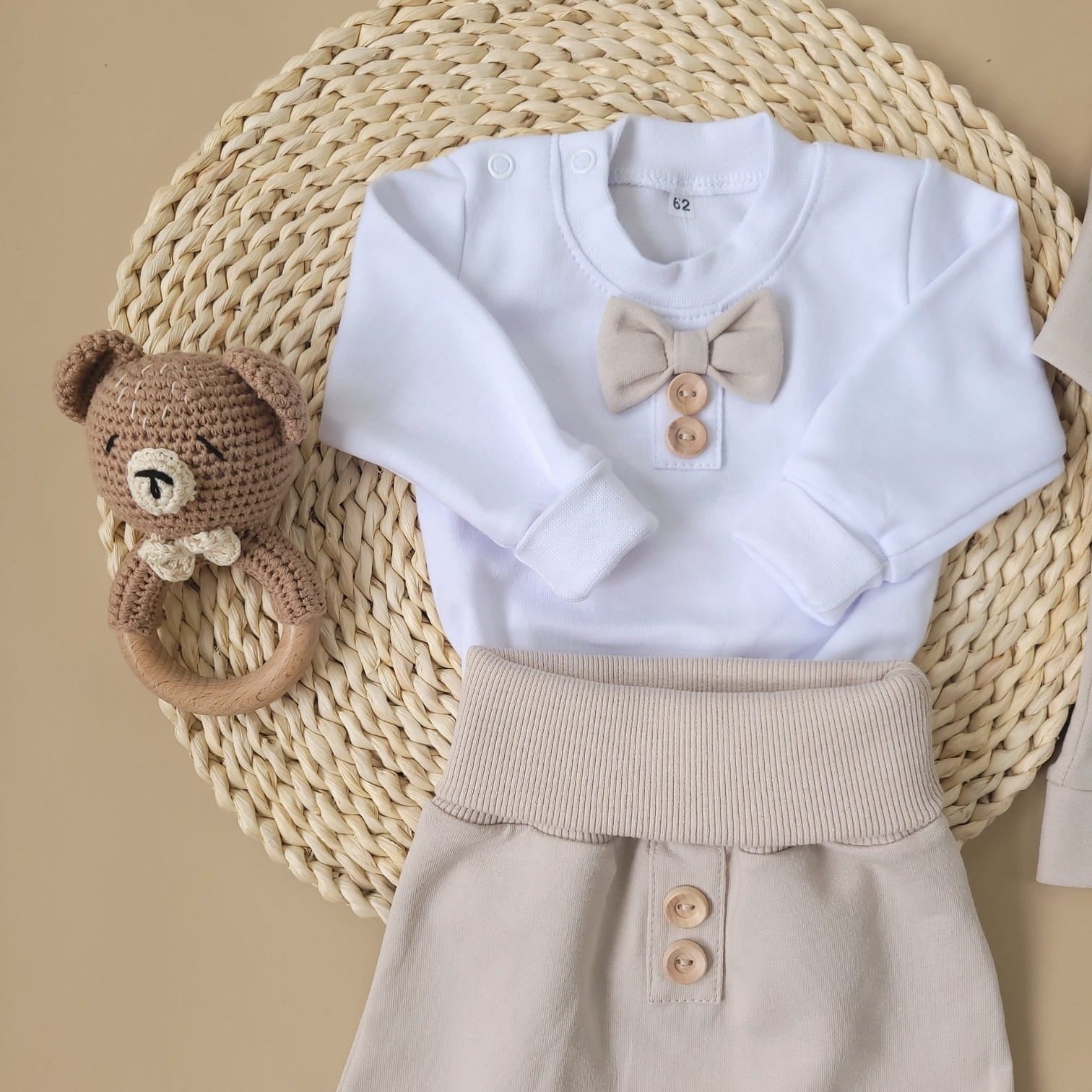 Keresed a tökéletes alkalmi szettet kisfiad számára? Ez az elegáns, modern stílusú babaöltöny tökéletes választás keresztelőre, esküvőre vagy bármilyen ünnepi eseményre. A szett ötvözi a kényelmet és a stílust, hogy kisfiad ne csak gyönyörűen nézzen ki, hanem jól is érezze magát a fontos napon.