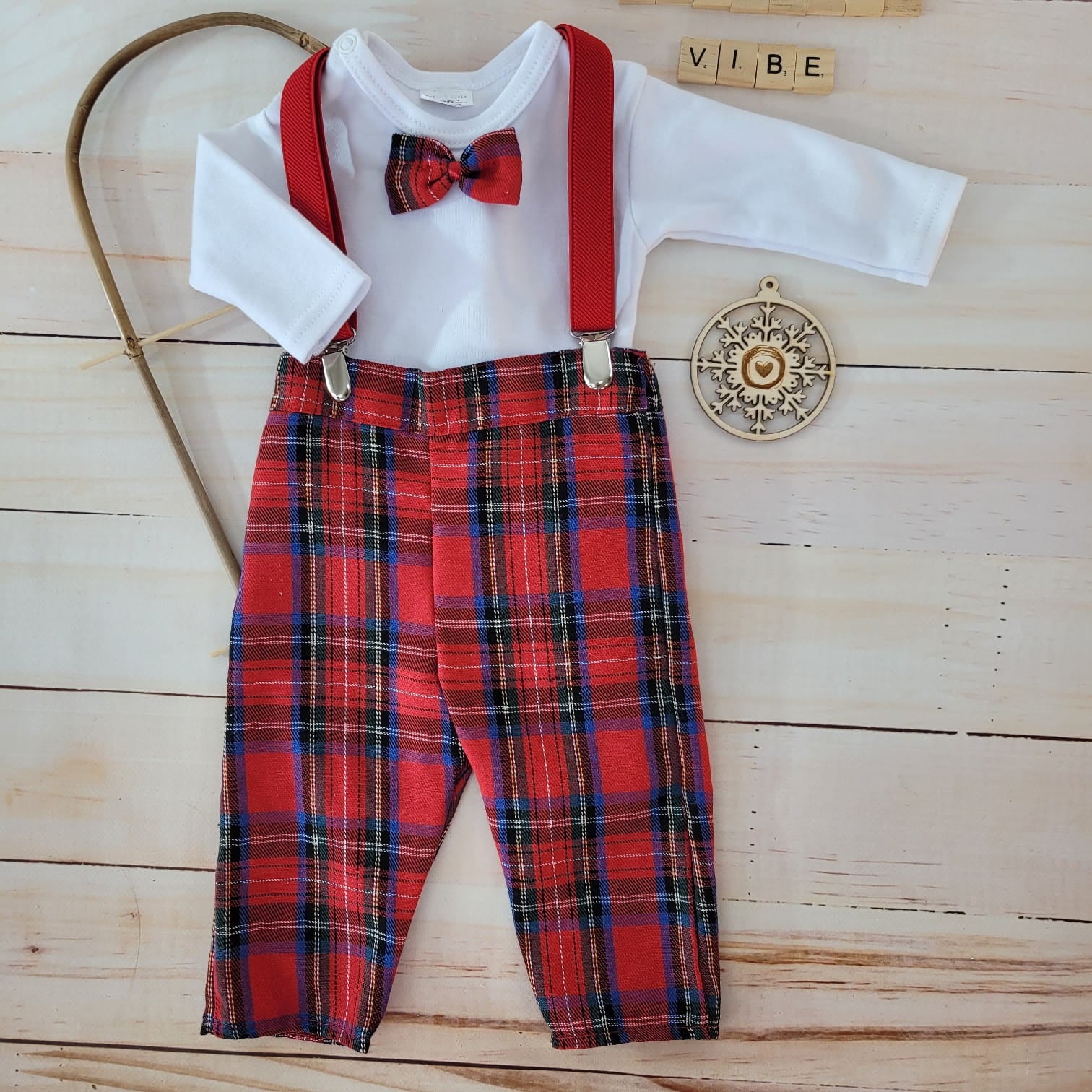 3 részes piros kockás ünnepi öltöny szett (56–86)