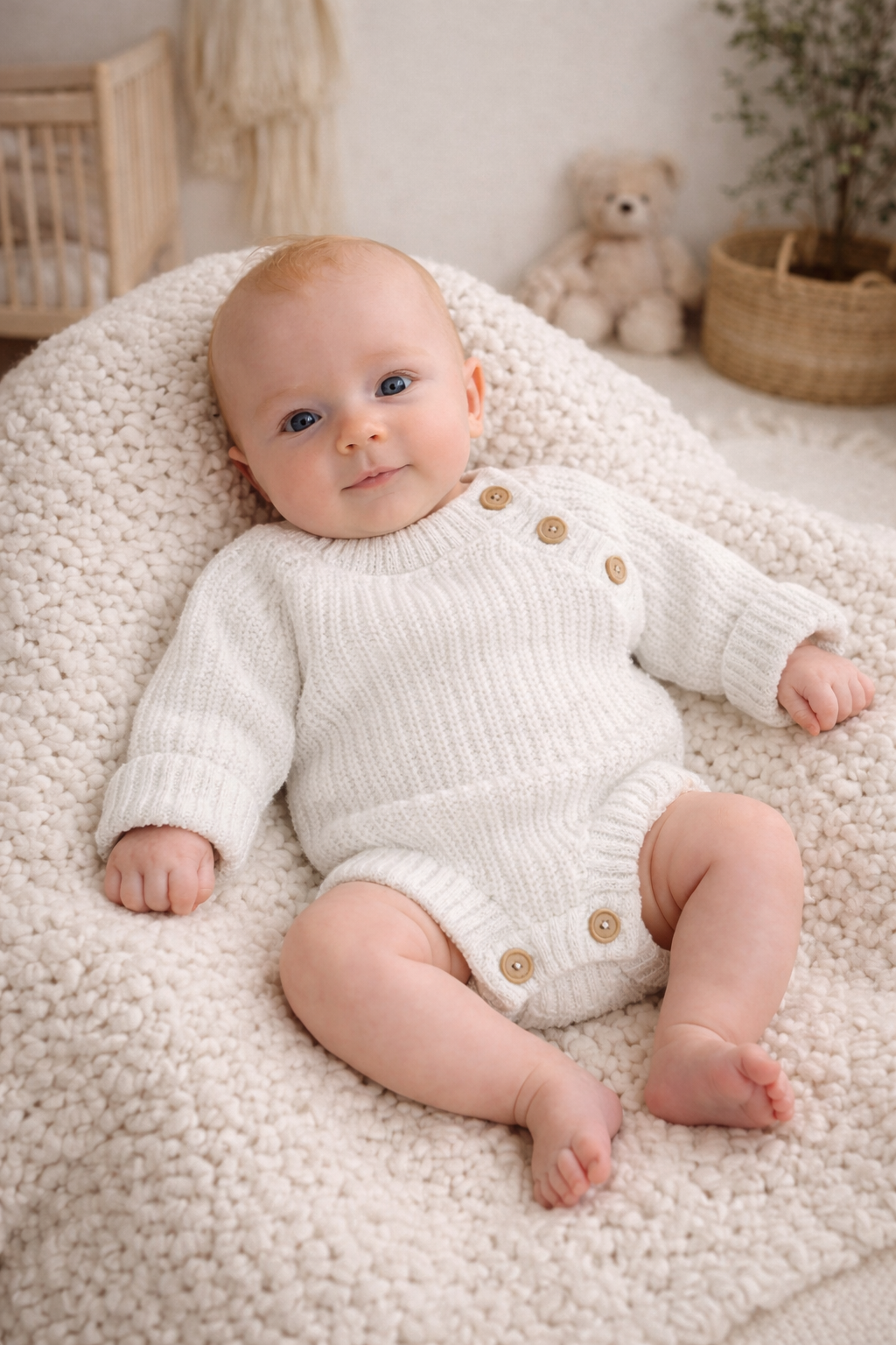 Egyedi kötött pulóver–body, ami együtt nő a babával.