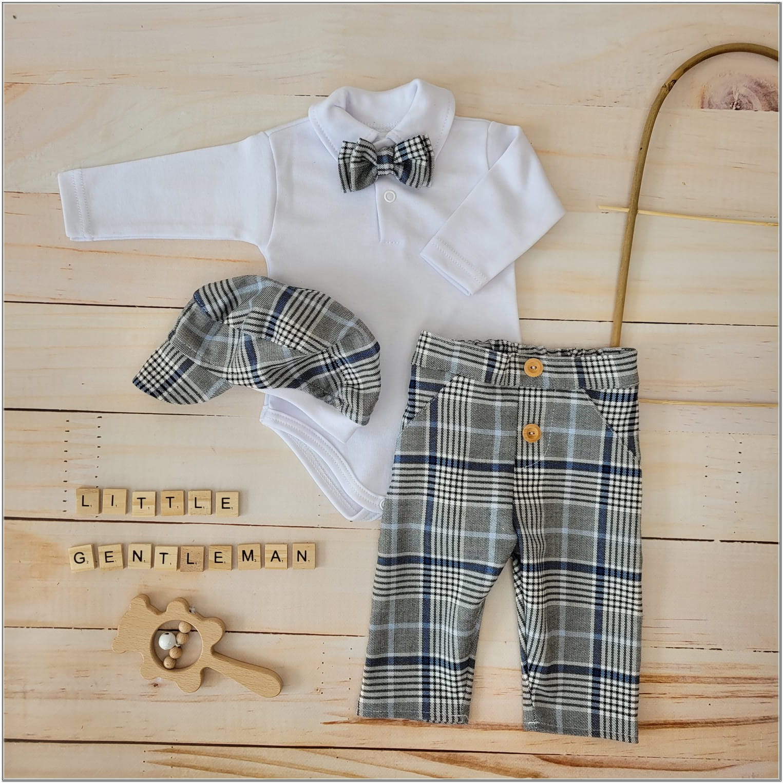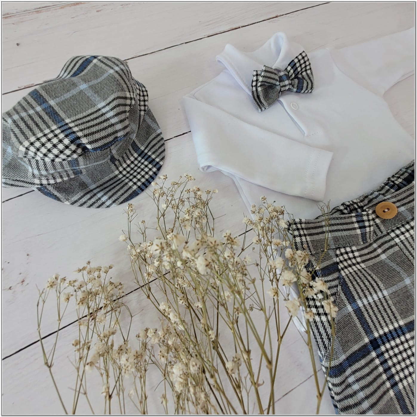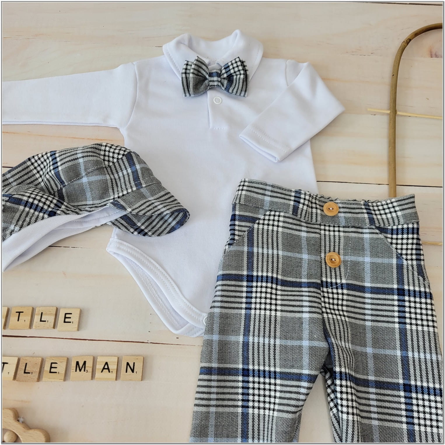 3 részes kockás ünnepi öltöny szett, szürke