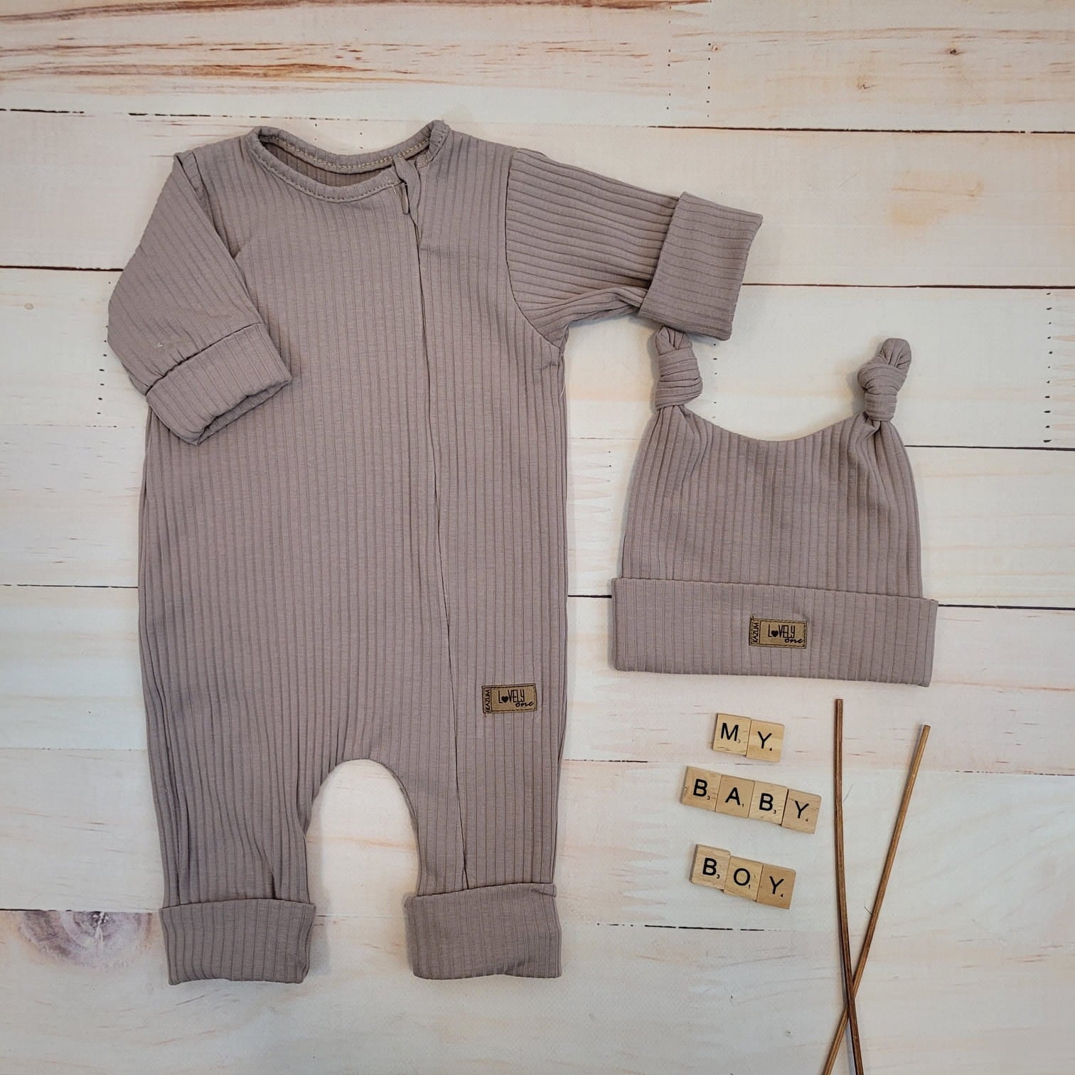 A sapka és a rugdalózó egyaránt rugalmas és kényelmes viselet a gyermeknek.