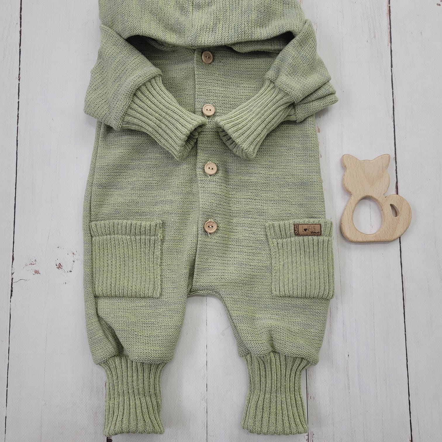 Kötött overál levehető, mély kapucnival – tavaszra és őszre