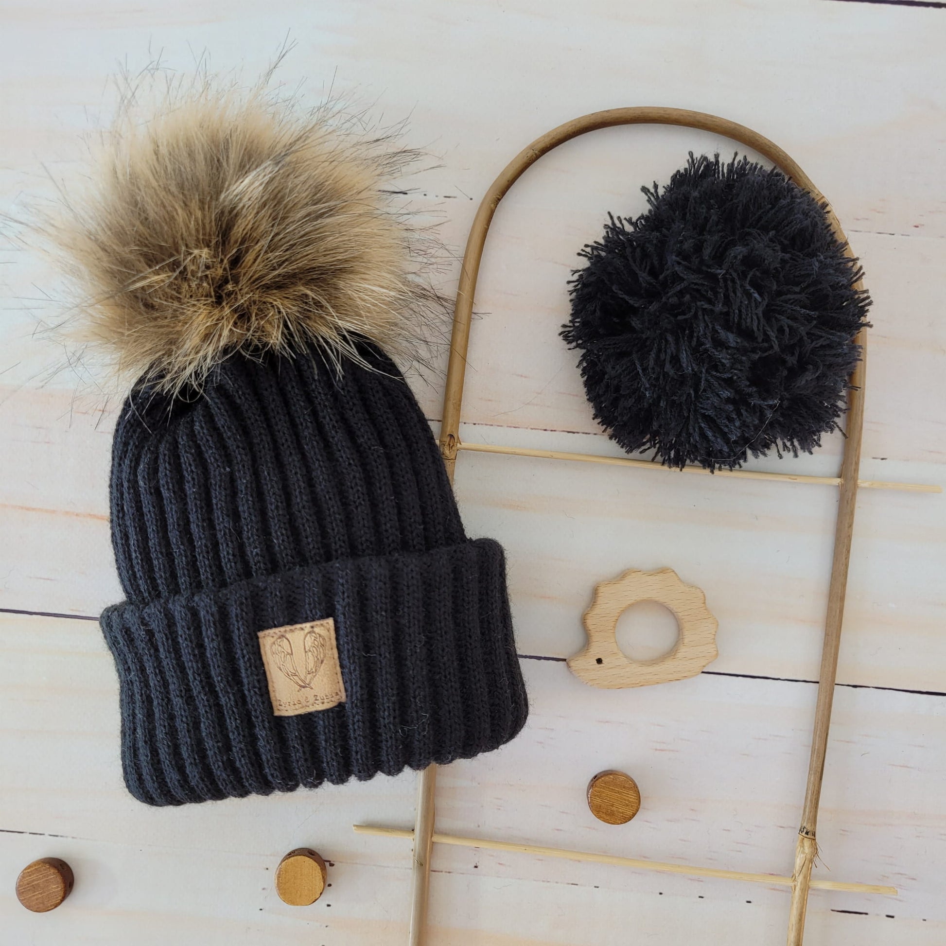 A sapka kétrétegű, a pomponok puhák, így kényelmes viselet a gyermek számára.