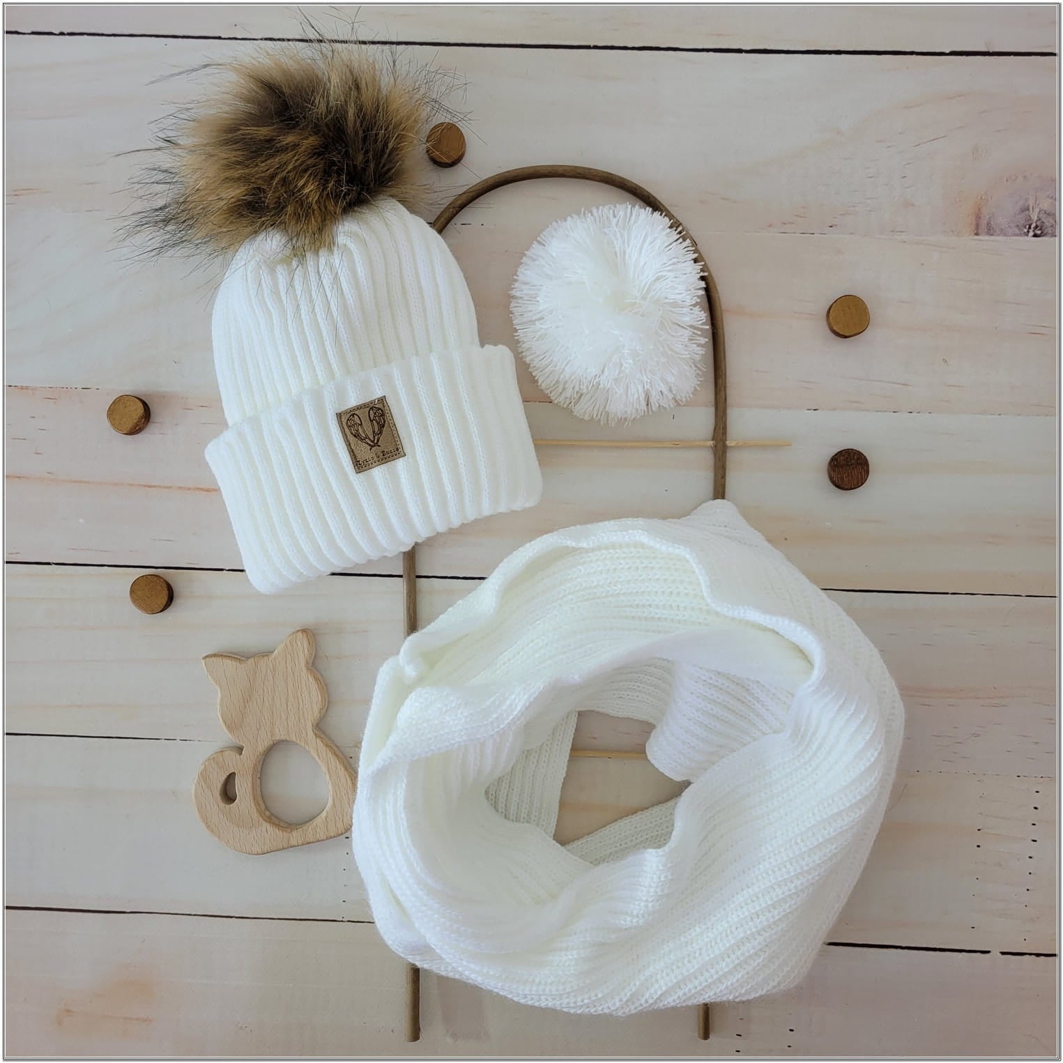 Téli szett – 3 az 1-ben sapka pomponnal és sállal
