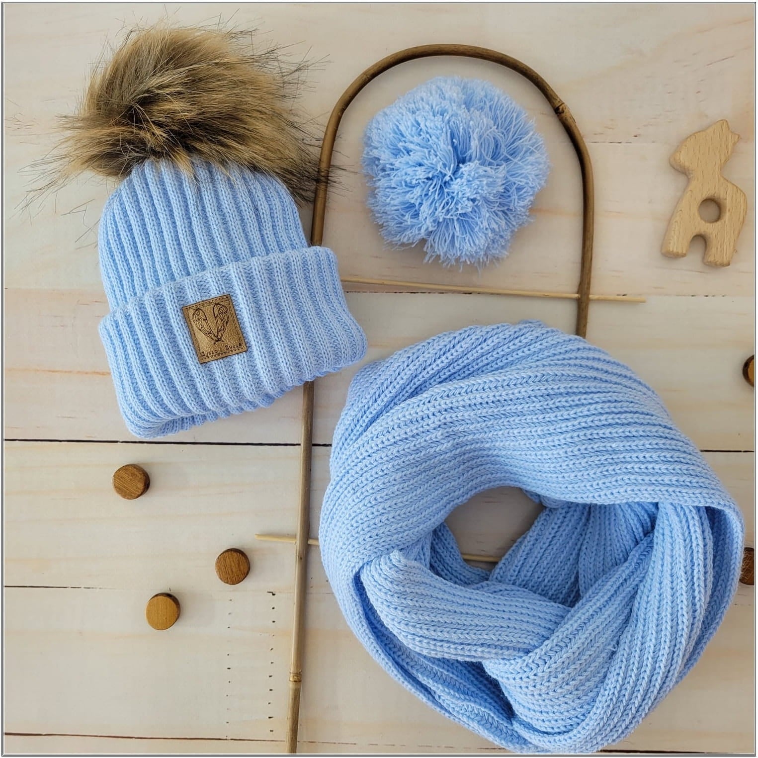 Téli szett - 3 az 1-ben sapka pomponnal és sállal